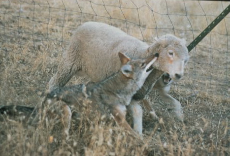 English: coyotes killing lamb