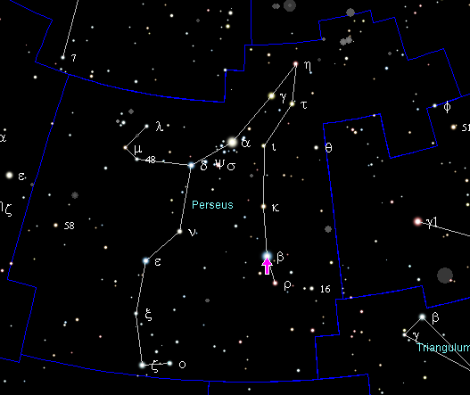 The position of Beta Persei (Algol; Gorgona; Gorgonea Prima; Demon Star; El Ghoul)