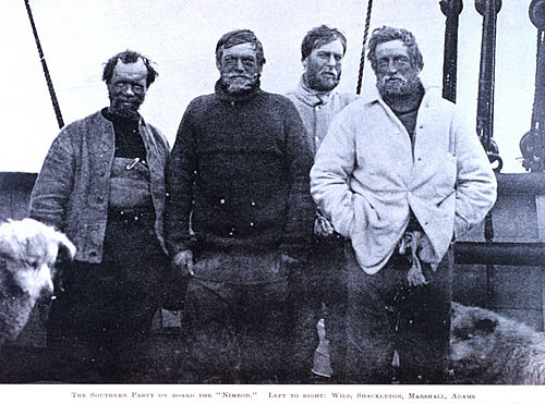 | current | 18:33, 7 March 2007 | 500×371 (53 KB) | Andeggs ( Talk | contribs) | (Left to right - Wild, Shackleton, Marshall, Adams The four members of the party that set out to attempt to become the first to reach the South pole, they were defeated by the weather, but also a lack of supplies and suitable equipment just 97 miles from ) |