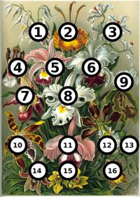 The 74th plate from Ernst Haeckel's Kunstformen der Natur of 1904, showing various types of orchids.