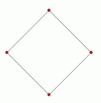 Vertices and edges of a square, arranged to match the layout of similar diagrams of higher-dimensional hypercubes. |