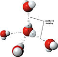 English: Model of hydogen bonds in water in English.