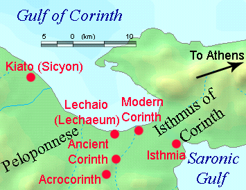 Español: Situation of the Isthmus of Corinth