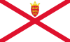 The flag of Jersey. It is from the xrmap flag collection, specifically "uk_jersey.svg" in flags-2.6-src.tar.bz2. The README file in that collection says of the SVG flags "We release them in the public domain".