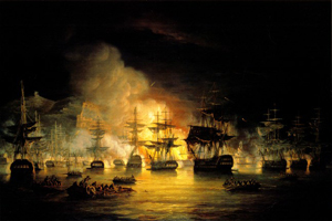 Bombardment of Algiers by Lord Exmouth in August 1816, painted by Thomas Luny. |