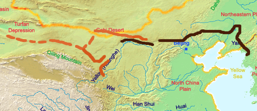 Deutsch: Eine Karte der chinesischen Mauer zur Zeit der Han Dynastie