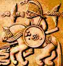 depiction of Odin on a Vendel period (7th century) helmet plate, found in Uppland, Sweden.