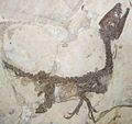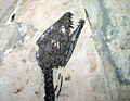English: The National history museum in Milan, Italy. Fossil of a juvenile individual of Scipionyx samniticus. The fossil (to date the first of this species ever) preserves in an exceptional way clear traces of soft tissues - a rather rare event. Picture by Giovanni Dall'Orto, April 22 2007.