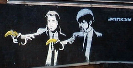 Banksy on Pulp Fiction. Image since removed by graffiti cleanup crews. |