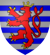 Coat of arms of the Counts, Dukes and Grand Dukes of Luxembourg after 1348. Combination of the Luxembourg arms with its tail crossed in saltire from Berg  Blazon: Barry of ten argent and azure, a lion rampant gules, queue fourchée crossed in saltire, armed, langued, and crowned Or. |