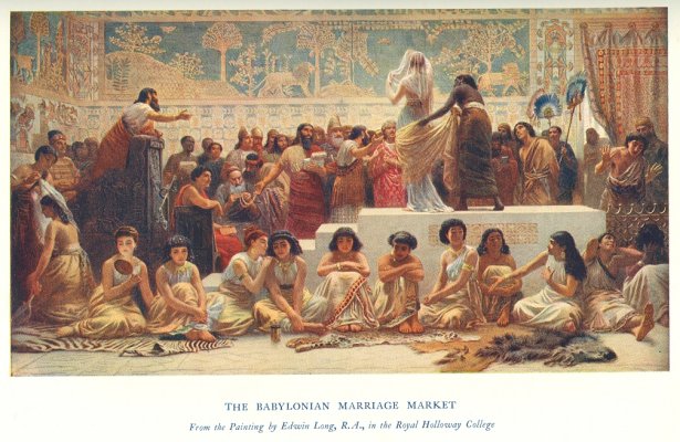 The Babylonian Marriage Market, from the painting by en:Edwin Long, in the Royal Holloway College. |