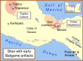 A map of the better known Mexican sites from the Formative Era, with a very general date of 600 BC (BCE). The yellow sites are known villages and towns. The smaller red dots mark locations where artifacts or art has been found without evidence of habitation.