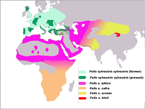 map of Felis silvestris subspecies, according to a DNA analysis published in Science (29 june 2007) : « The Near Eastern Origin of Cat Domestication ». |