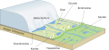 Česky: Schematické znázornění ustupujícího ledovce a jeho vlivu na okolní krajinu