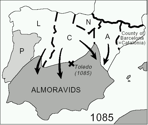 Map of Spain under Almoravides, 1085 Detail of pdf image: http://lcweb2.loc.gov/frd/cs/spain/es01_04a.pdf
