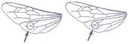 English: Left wings (forewing and hindwing) of the Western (Apis mellifera, left) and the Eastern honey bee (Apis cerana, right)