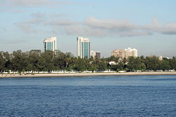 Downtown Dar es Salaam includes many small businesses, many of which are run by traders and proprietors whose families originated from the Middle East and Indian sub-continent - areas of the world with which the settlements of the Tanzanian coast have had long-standing trading relations. During the daytime the heavy weight of traffic, office workers, busy merchants, street vendors and restaurateurs of the area lend it a frenetic and slightly claustrophobic air. However, after nightfall the area is relatively quiet as much of the city's nightlife is located in more residential districts away from the city's mainly commercial centre.