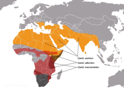 - Ethiopian wolf (Canis simensis) – sometimes called the red or Simian jackal, but more often regarded as a wolf