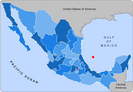 The United Mexican States (Spanish: Estados Unidos Mexicanos ( help· info)), or commonly Mexico (IPA: /ˈmɛksɪkoʊ/) (Spanish: México ( help· info) IPA: ['mexiko]), is a federal constitutional republic in North America. It is bordered on the north by the United States; on the south and west by the North Pacific Ocean; on the southeast by Guatemala, Belize, and the Caribbean Sea; and on the east by the Gulf of Mexico. The United Mexican States are a federation comprising thirty-one states and a federal district, the capital Mexico City, whose metropolitan area is one of the world's most populous.
