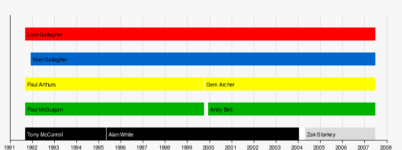 | Liam Gallagher Noel Gallagher Gem Archer Andy Bell Zak Starkey |