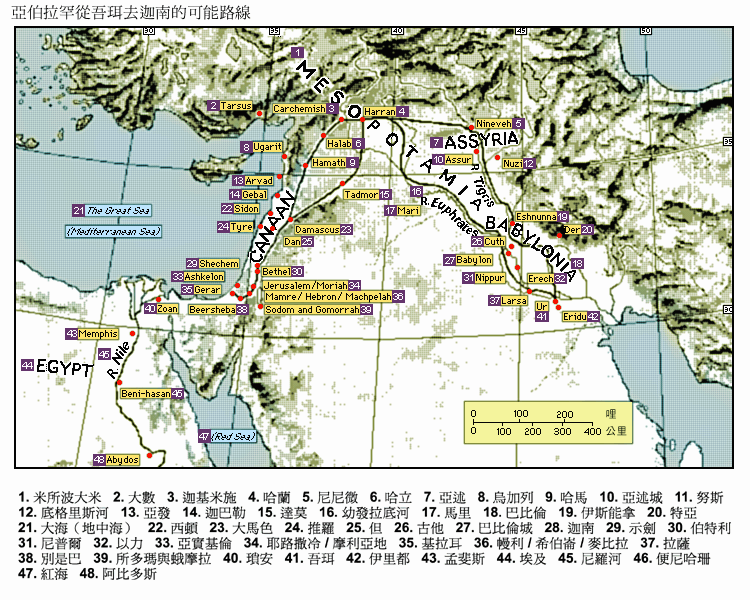 图 亚伯拉罕从吾珥去迦南的可能路线
