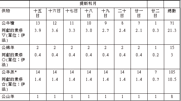 表 住棚节期间每日献祭表(民廿九
