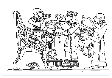 图 一个首领坐在有翼的宝座上接受贡物