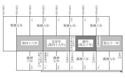(4)³ø§iC©MµØªº®¦¦~¡@¥»¸`±N®¦¦~©M³ø¤³ªº¤é¤l¨Ã¦C¡A¥i¨£³o¤£¬O´¶³q¾äªkªº¤@¦~¡A¦Ó¬O«ü·s®É¥Nªº¨ÓÁ{¡C56³o®¦¦~ªºÆ[©À¡A¬Ûµ¥©ó¥|¤Q¤E8¬@±Ïªº¤é¤l»P¤»¤Q¤T4±ÏÅ«¤§¦~¡A¦P¼Ë©M³ø¤³¤§¤é¥±Æ¡A¥i¨£¹²¤H©Ò«Å§iªºÁH¦~¨Ã«D¤¤Q¦~¤@¦¸ªº¦~¥÷¡A¤D¬O¤@¬q±Ï®¦¼s¶Çªº¤é¤l¡A¦Ó¥B¬O¥Ñ¤@¦ì¬°¦Ê©m¨üWªº±Ï¥D©Ò¦¨´Nªº¨Æ¤u¡]¤»¤Q¤T7-9¡^¡C