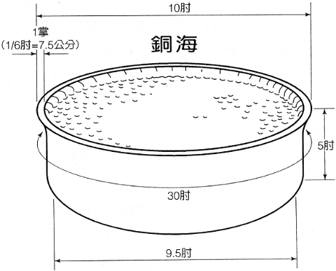 39. 由銅海及盆座的位置可以看出它們被視為是重型永久性擺設,可能是因為它們裝滿水時的重量所致。