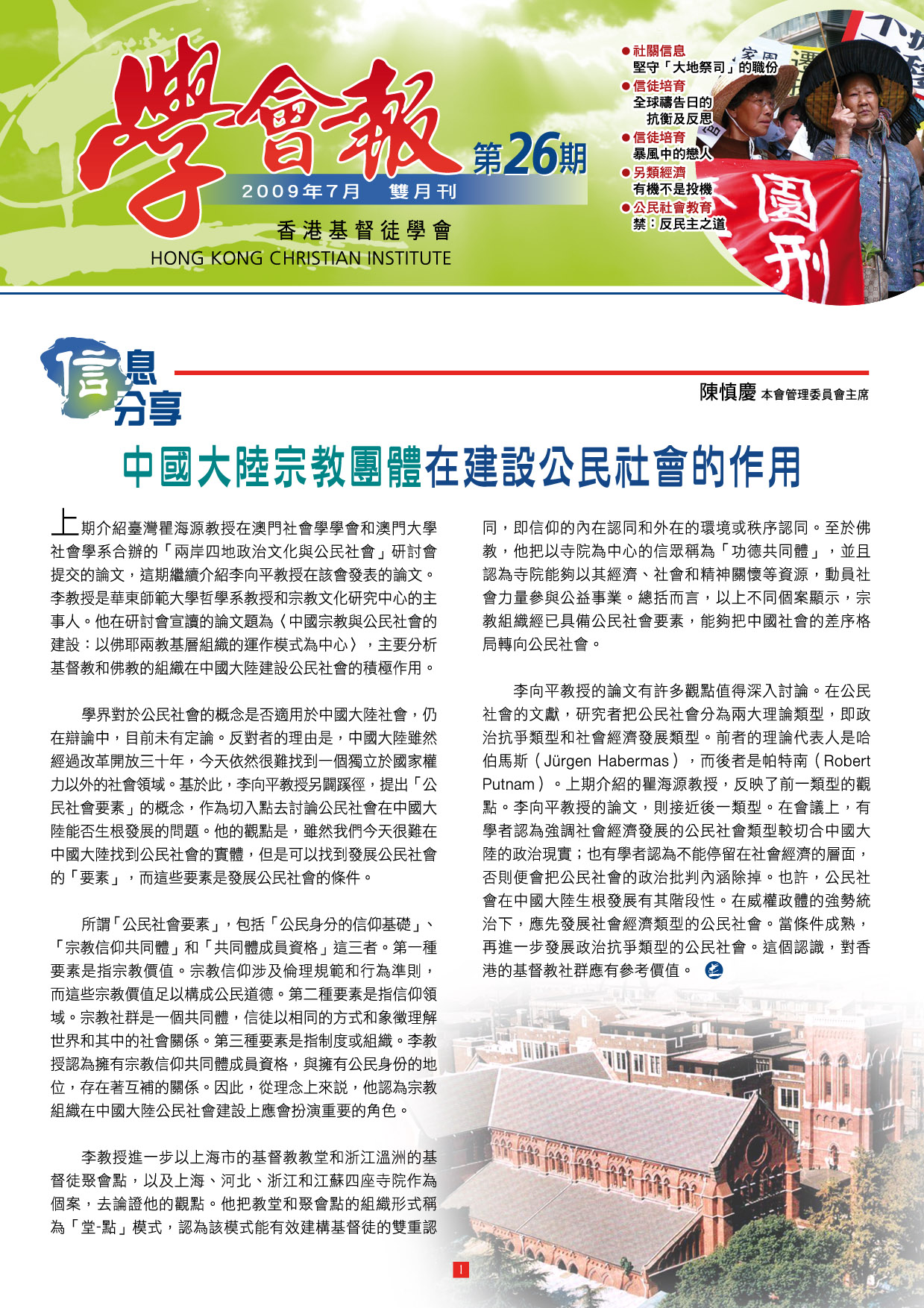 中國大陸宗教團體在建設公民社會的作用(陳慎慶)