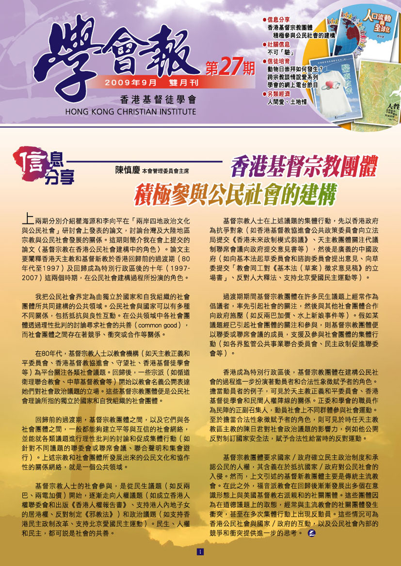 香港基督宗教團體積極參與公民社會的建構(陳慎慶)