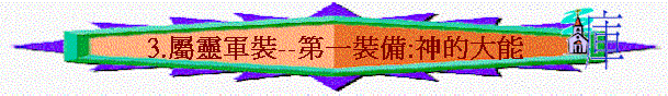 ∼保羅在以弗所書提及在穿戴軍裝時,要首先倚靠神的大能力大力,另外在林後中,也提及爭戰的兵器是在神面前有能力