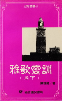 拾珍叢書 23 編號:FTA23 序言: 雅歌書好比一個屬靈廣大的園囿,雖是一草一木,都有靈意在其中;雖是一山一水,都有寓意在其間。外而無論飛禽走獸,皆可以明道;內而無論室內雜物,俱可以傳真。稱為酒中之酒,歌中之歌,誠為不謬。但講解這本書,非富有屬靈者,不能將內中之寶藏發表出來。像我這軟弱器皿,屬靈膚淺,不易闡明本書深奧的意義,僅將平日從主所領受的,在講經的時間記錄下來,加以修正,方才成為此書。它的內容,雖有的部份像註釋,卻不全是註釋;雖有的部份像講義,卻不全是講義。因為寫這本書的本意,是注重主與聖徒、聖徒與主,在靈交的生活上,有充份的表顯,所以叫作《雅歌靈訓》。 考查本書全卷的真理,大意不是說頭一步的道理——得救的根基,乃是講說第二步的道理——靈程的進步。所以在全卷書中,對於罪惡、贖罪、赦罪等等問題,是尋索不到的。但對於第二步得救上——魂的得救,及第二步的成聖上——行為成聖,則是反覆題說,…… 主曆一九三九年一月誌於 |