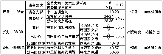 27. 灾难与禧年 28. 以色列之灭亡 29. 犹大之灭亡 30. 犹大之灭亡 31. 呼民归神 *32. 预言神必拯救 33. 预言神必拯救 34. 呼列国归神 35. 禧年之福 36. 西拿基立入侵 37. 西拿基立入侵 38. 希西家之病 39. 希西家之病 40. 复兴之预言 41. 神的仆人(以色列) *42. 神的仆人(弥赛亚) 43. 神的仆人(以色列) 44. 神的仆人(以色列) 45. 神的仆人(以色列) 46. 巴比伦之灭亡 47. 巴比伦之灭亡 48. 劝民听神 49. 劝民听神 50. 劝民听神 |
