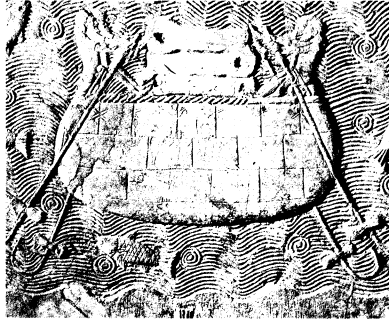 航行在底格里斯河与幼发拉底河,载运原料的古老皮身船;此为西拿基