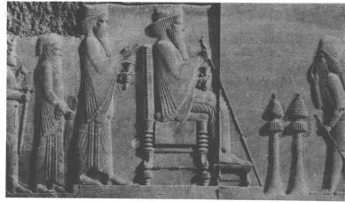坐着的是大利乌一世(主前五二一至四八六年),站在他后面的是已加冕的薛西王子;