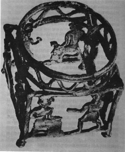 献祭用的青铜架,圆形显示行政管理拜祭者(祭司)向坐着的神明献礼;