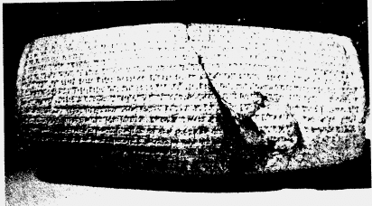 居比路圆筒(主前五三六年),上面刻着的文字,表示准许犹太人离去,和重建圣殿。
