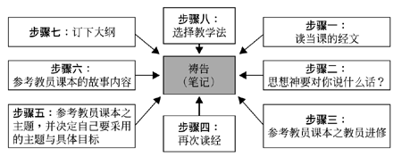 在每个过程中,“祷告”好比一根穿绳线,将每一个步骤织在一起,顺服圣灵的引导,预备所要教导的课程。