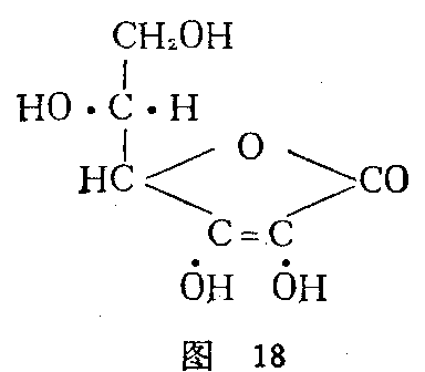 病的維生素C,存在於綠色菜蔬與柑屬水果裡,其結構式比較簡單,表示如圖18。這種