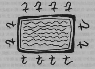 面圓圈中間有一點的圖形代表太陽,在太陽底下到處都是大洪水,看不見高山,也