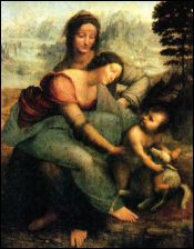 达文西晚期画作,最有名的就是「蒙娜丽莎」了。 达文西晚期作品,都是透过微笑传达某种神秘体验,这在伴其过世的三幅重要晚期画作「蒙娜丽莎」、「圣母圣婴和圣安妮」、「施洗约翰」都具有这种特点。 为何我们说是「神秘体验」呢? 我们来看「蒙娜丽沙」这幅画。 达文西巧妙运用透视学原理,让背景透视不一致,左低右高。因此,从左到右看画,人会渐渐下降,从右到左看画,人会渐渐上升。视角变换,画面会变动,使人捉摸不定。 这正是「蒙娜丽沙」成为罗浮宫镇宝名作的主因。「蒙娜丽沙」看起来绝不仅只是个微笑的女人,在这微笑背后,有某种不能掌握的神秘性,是一种美,却是无法掌握之美。是一种自然,却是无法掌握的自然。 其实达文西开始画「蒙娜丽沙」这段时期,已对绘画渐渐厌烦,他宁愿花时间从事几何学。而从达文西跟人书信往返中,我们也发现这个热爱科学的学者,其宗教信仰很自然的趋向神秘的泛灵主义,神就是大自然与自然法。这好象也是很多热爱科学的人会走向的宗教信仰模式。我们在二十世纪末,会很有趣的发现,这样的神秘体验与大自然法就是神的泛灵宗教模式,仍存在很多人的心中。 这正是「蒙娜丽莎」微笑背后的深刻含意。 达文西最后几年是在法国度过的,临终之际,很奇怪的,那种「贤士朝圣」与「最后晚餐」中呈现的对生命的热爱与对信仰的怀疑,竟被宗教的希望所取代,他死时要求所有的宗教仪式一样不可少。 这种从人文主义走向宗教虔敬,从对耶稣的怀疑、对大自然的神秘体验走向宗教的救赎转变,应当跟临终之际的死亡思索有关了。透过死观照生、和透过生观照生,竟产生这么大的宗教转变,这应当是比「蒙娜丽莎」微笑更加神秘不可言传了!