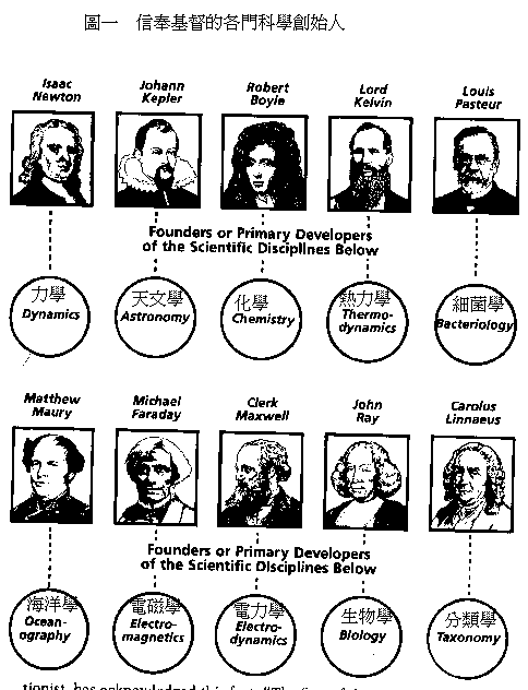 像开普勒,牛顿,波义尔,布儒斯特,道耳顿,法拉第,巴斯卡,麦克斯韦,巴斯德,开尔文,及许多其它同等出名的科学家注五,都是坚信施行创造的全能上帝的特别创造,相信圣经是上帝所默示的圣言,相信耶稣基督是主,是救主的人。他们在科学所作伟大的贡献,诚然为现代科学立下了根基,但他们都全心相信他们如此行,只是『依照上帝的思想去思想』,行祂的旨意,荣耀祂罢了。在附录一的表中,列出了这些过去历史中相信圣经的伟大科学家,以及他们的贡献。