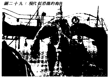 而且,近年来已有许多报告发表注四三,指出一些恐龙,水中及陆地的恐龙,可能仍然活着。虽然这些报告都未获得证实,但这些报告已至少使进化论的科学家态度认真起来(可参考图二十八)。若活恐龙存在的想法可以考虑,那么接受那在Glen Rose附近Paluxy河床中人与恐龙同时存在的有力证据,就不该是不合理的了。