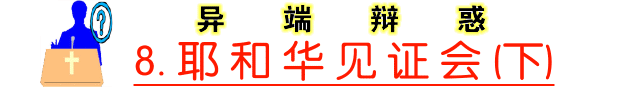 1.偏差溯源 2.大公教会(上) 3.大公教会(中) 4.大公教会(下) 5.摩门教(上) 6.摩门教(下) 7.耶和华见证人会(上) [ 8.耶和华见证会(下)
