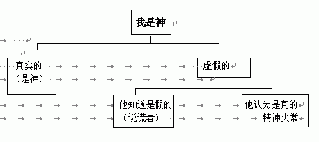 C·S·鲁益师 如此基督教:“如果一个人仅仅是人在说出耶稣所说的那些话,那么他就不是一个伟大的道德老师,他或者是精神病患者,与一个说他自己是一个煮熟的鸡蛋的人是在同一个程度上,──或者他是地狱里的魔鬼。你必须作出选择,或者这个人过去是,现在是神的儿子;或者是一个疯子或是更糟糕的人。你可以把他看成是一个蠢蛋,你可以把他作为魔鬼唾弃他杀他;或者是你可拜倒在他脚下称他为主为神。但还是让我们不要想信他是一个伟大的人类导师这样的这样的高级蠢言。他并没有给你们这样的选择,他也愿没有打算这样做。”