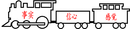 不要依靠感觉。我们信仰的根据,是圣经可靠的应许,不是我们容易改变的感觉。基督徒的信心生活是根据神的信实和圣经的可靠。下面火车的图表说明事实(神和他的话),信心(我们信靠神和他的话),和感觉(我们信靠和顺服的结果)三者之间的关系。(约翰福音14:21).