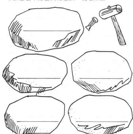 下面有几块粗糙的石块。当你阅读彼得前书二章1节时便知道,主要求我们从粗糙的石块上切去什么?把它们写在第一块石头上: