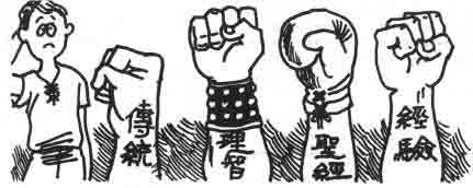 神赐给你思想和理智,并期望你能加以运用。此外,又赐给你经验,使生活有意义。有些事情不论经过了多少年月,都不会改变;特别是一些以圣经为本的传统,更值得保留。但是,无论理智、经验抑或传统,都不会成为你信仰上最完整的权威!