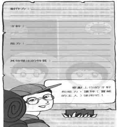 想一想自己的特质。有否体会到你是多么独特的呢?可能你从来没有考虑过!在下列每个自己具备长处的范畴里,请列出几个你所拥有的特点。这练习会帮助你明白,神把你造成一个特别的人,并以适当的品质和技巧来装备你,使你能为他作特定的职事。